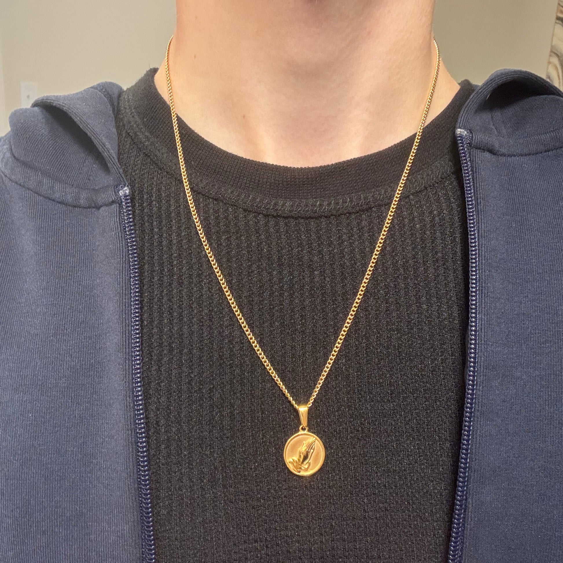 Gold Hand of God brings a powerful, symbolic presence with its polished, tarnish-resistant stainless steel wrapped in a lasting gold finish. The detailed hand pendant carries spiritual meaning and bold texture, hanging from a 21-inch curb chain for a refined yet modern look. Secured with a sturdy lobster clasp, it’s built for everyday wear and adds a meaningful, elevated touch to any fit.