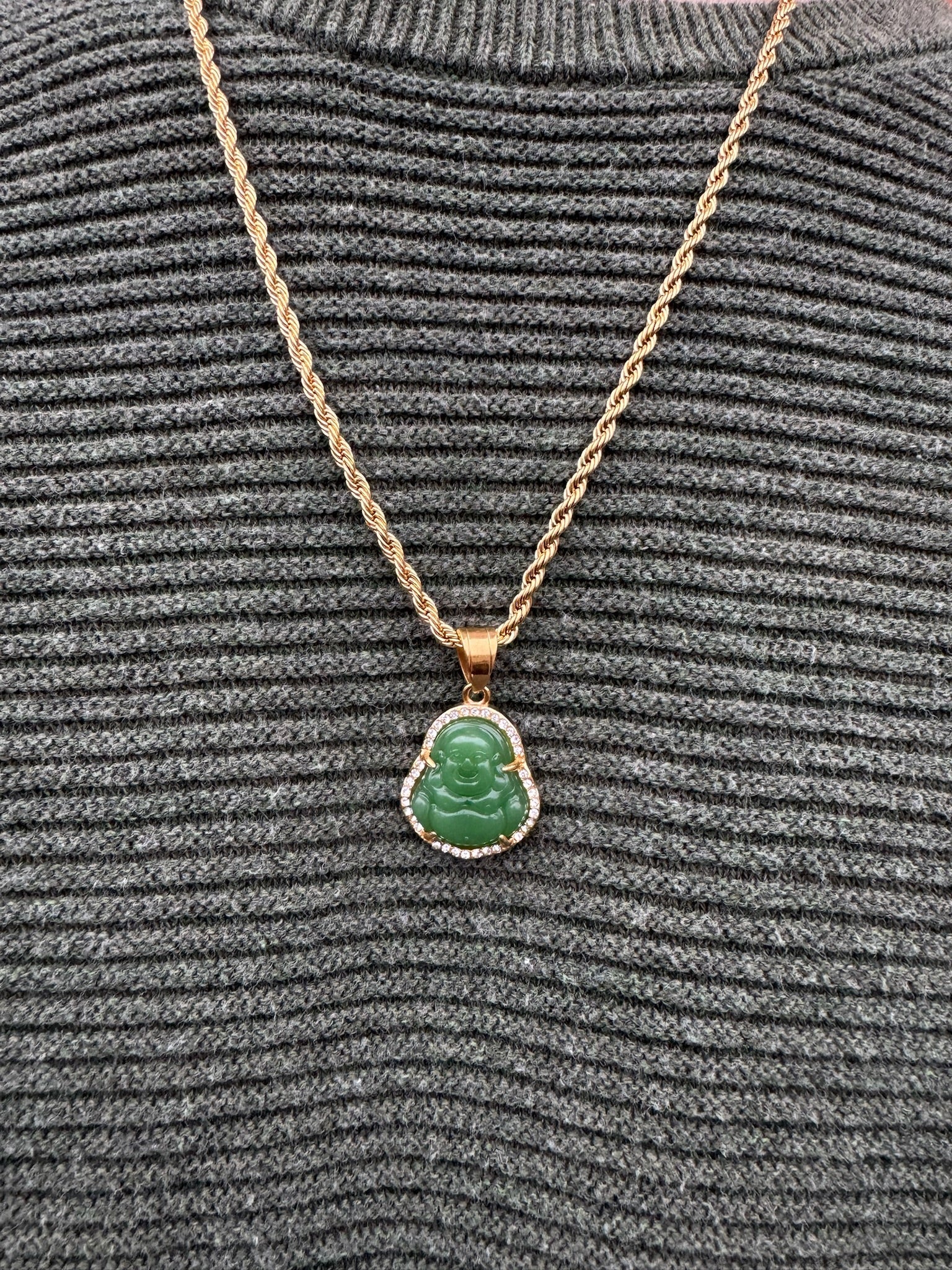 • Style: Green gemstone Buddha pendant on gold rope chain