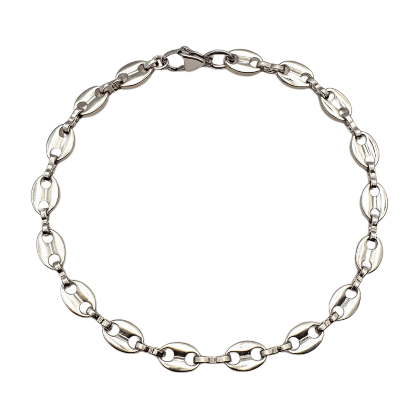 Style: 3mm coffee bean–style links with a sleek, reflective finish