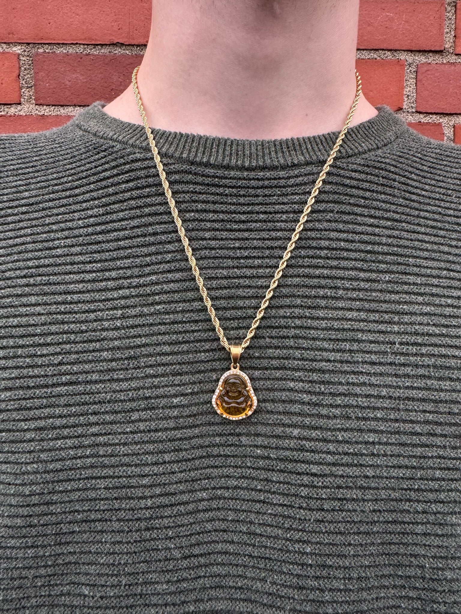 • Style: Yellow gemstone Buddha pendant on gold rope chain